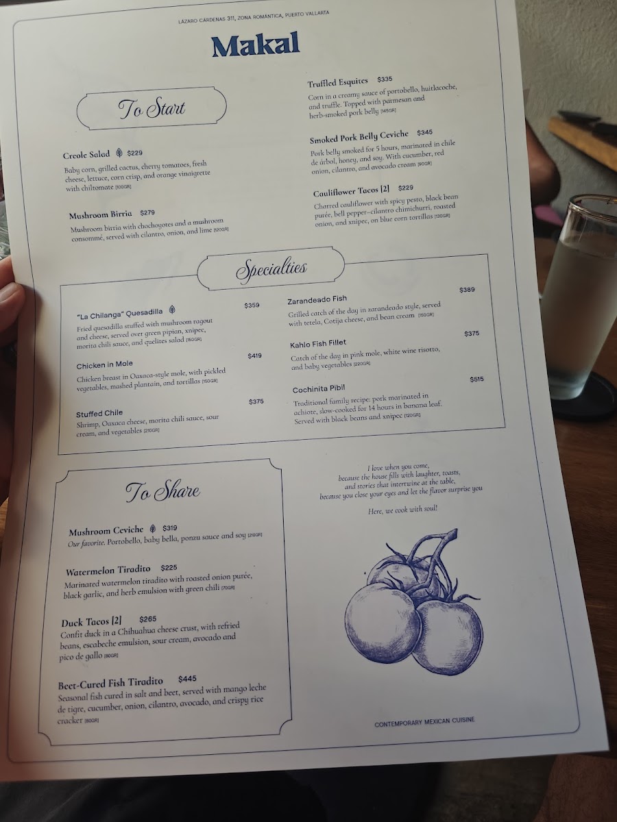 Welcome to Makal, a culinary gem nestled in the heart of Puerto Vallarta's Zona Romantica. This restaurant elevates dining with an outstanding 10-course tasting menu, each dish meticulously crafted to deliver both bold and subtle flavors. Guests have raved about the thoughtful presentation and exceptional service, with staff members like Alex and Lorena turning meals into memorable experiences.